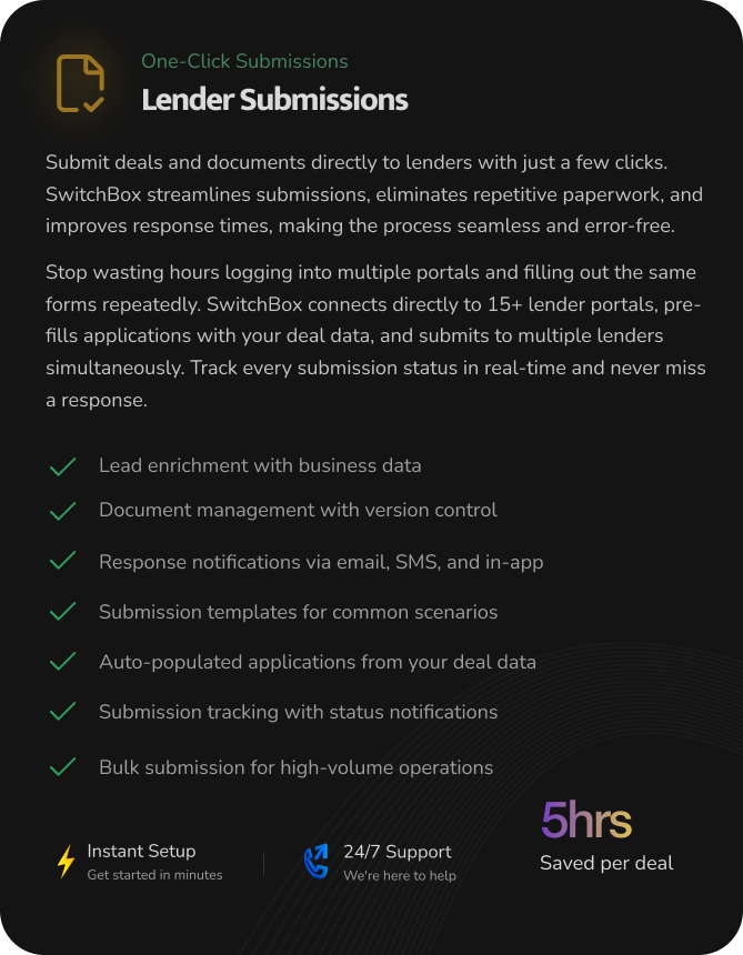 Submit to 15+ portal lenders simultaneously with a single click. Save hours of manual work and reduce...